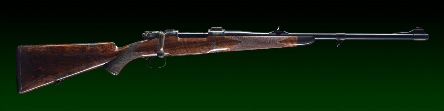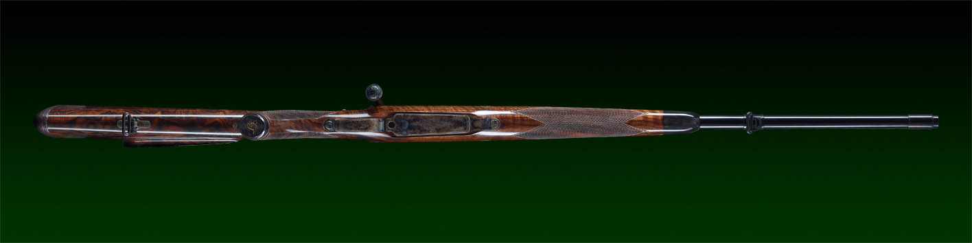 System: M98 DWM 1908, fein eingestellter Recknagel Flintenabzug, flache Recknagel Secura Sicherung, verlängerter Kammerstängel, Kammergriffkugel umlaufend graviert.