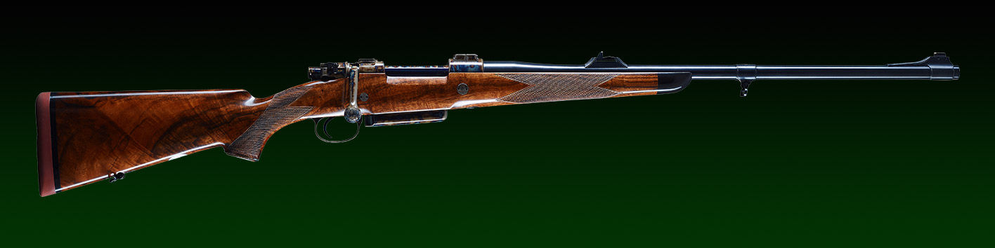 System: M98 Steyr 1912, fein eingestellter Recknagel Flintenabzug, flache Recknagel Secura Sicherung, verlängerter Kammerstengel, Kammergriffkugel umlaufend graviert.